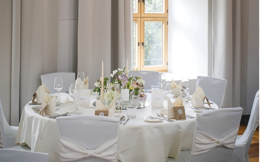 - Schlosssaal: Eleganter Festsaal für bis zu ca. 100 Personen – perfekt für Bankette, Hochzeiten oder Gala-Abende.